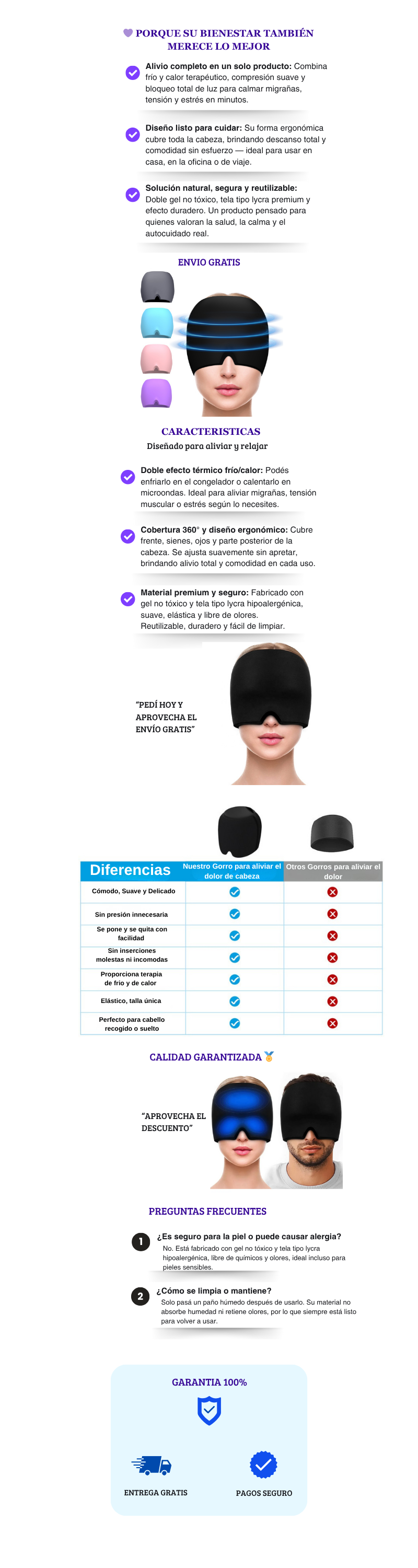 Gorro Mascara De Gel Frío | Control Migraña y Dolores de Cabeza